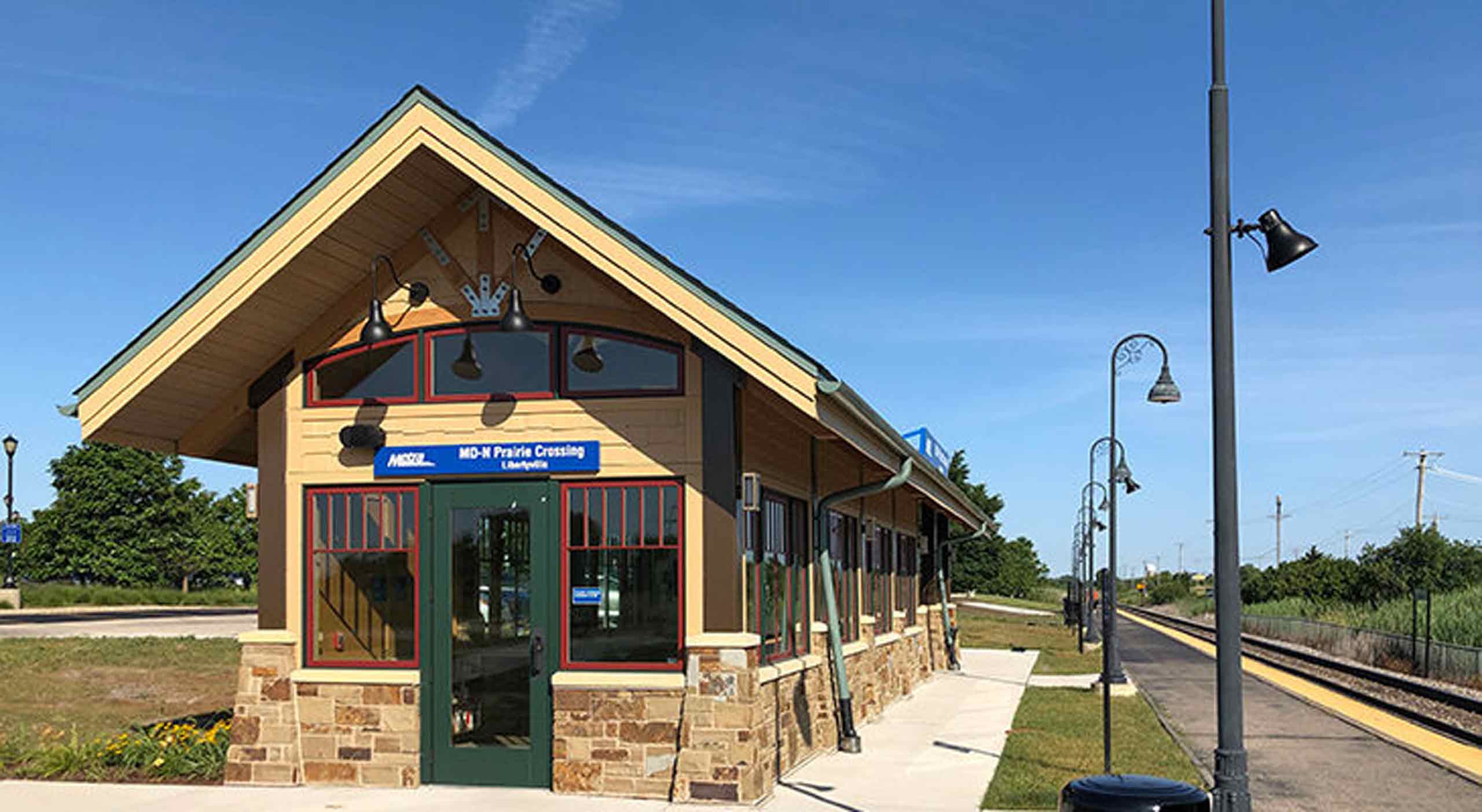 Prairie Crossing train station warming house uses Arts and Crafts style to welcome commuters and complement neighbors