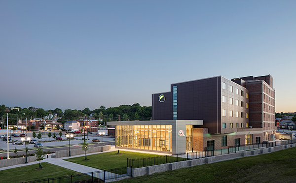 A retrofitted hotel gets another sustainability star when it becomes part of an intermodal setting and therefore reduces guests’ reliance on automobiles. Element Moline connects to a train station and has a bus transfer facility right across the tracks.